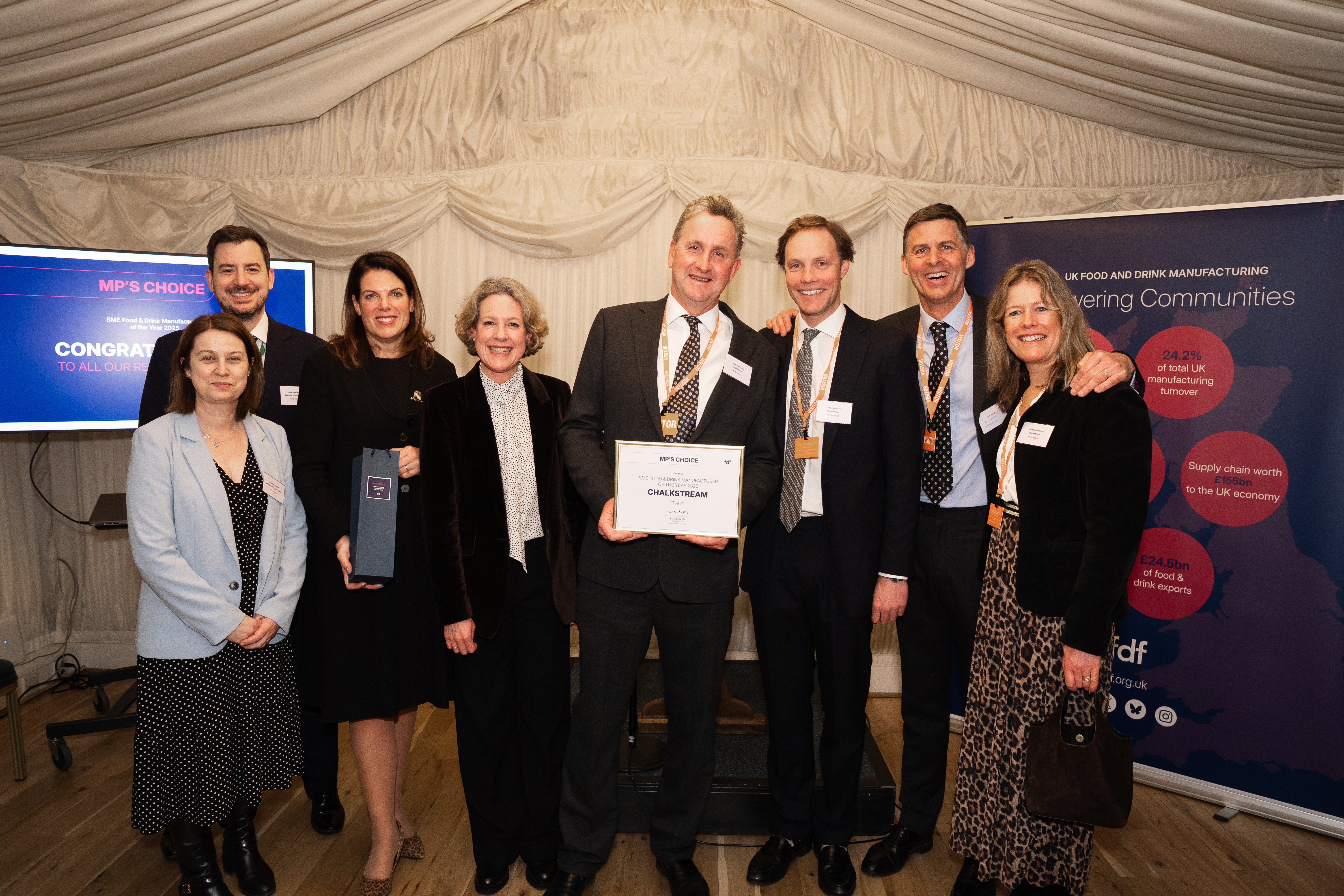 ChalkStream Foods was crowned the winner at a Parliamentary reception on 14 January 2026, attended by MPs, industry leaders and FDF representatives.