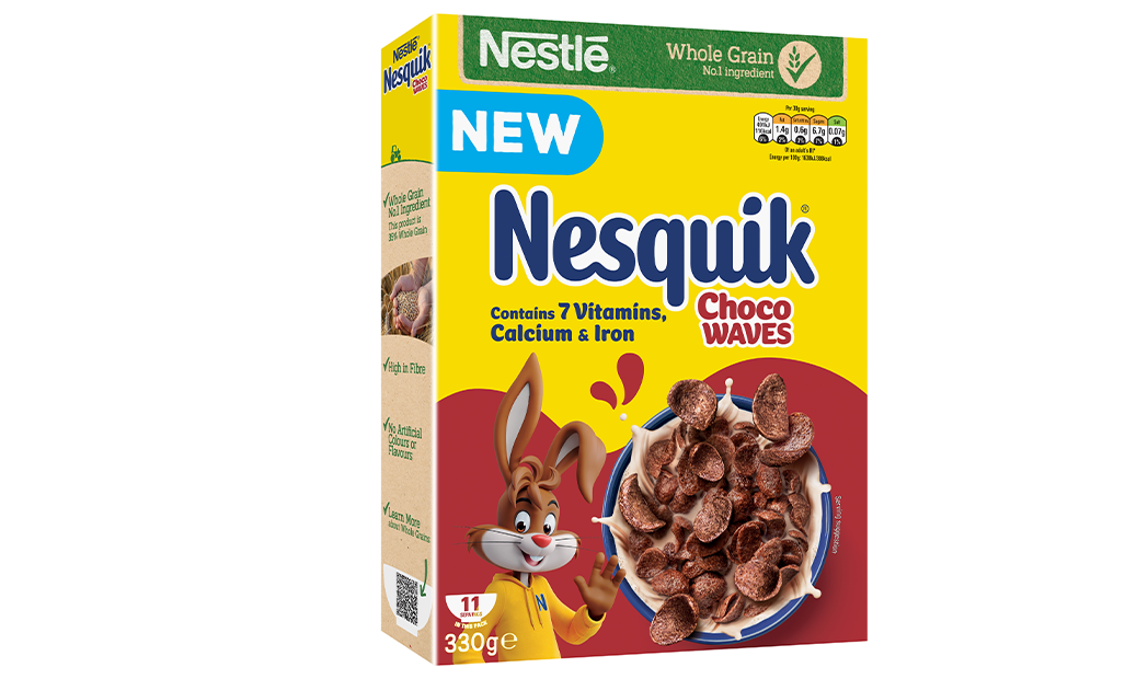 Nesquik Choco Waves were launched in 2023, and was supported with on-pack messaging to clearly signal whole grain and fibre content to consumers. Specifically, this included ‘High in Fibre’ side-of-pack messaging, as well as being supported by the launch strategy for all involved media; digital and shopper marketing activities (in-store and online media). This communicated taste while also highlighting the ‘Whole Grain No.1 Ingredient’ Green Banner. A CRM email was also sent to our database of 170,000 consumers which also highlighted the fibre content.