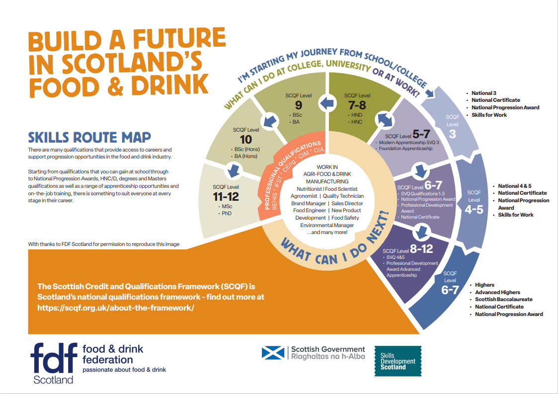 There are many qualifications that provide access to careers and support progression opportunities in the food and drink industry. The route map outlines the range and level of qualifications available.